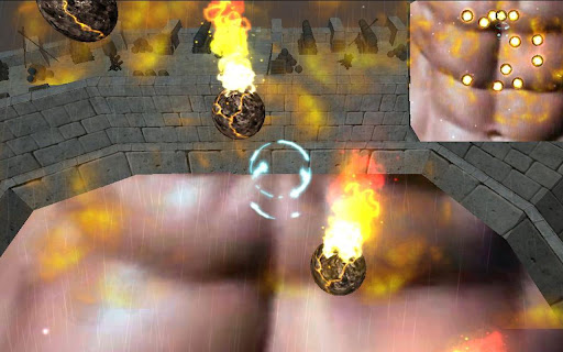 Your workout is to aim the "light blue circle" indicator directly on the fireballs falling from the sky to blow them up!